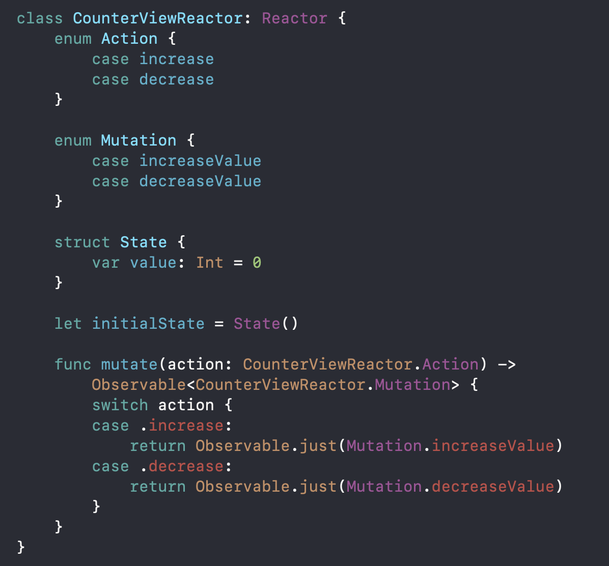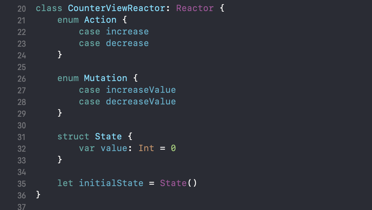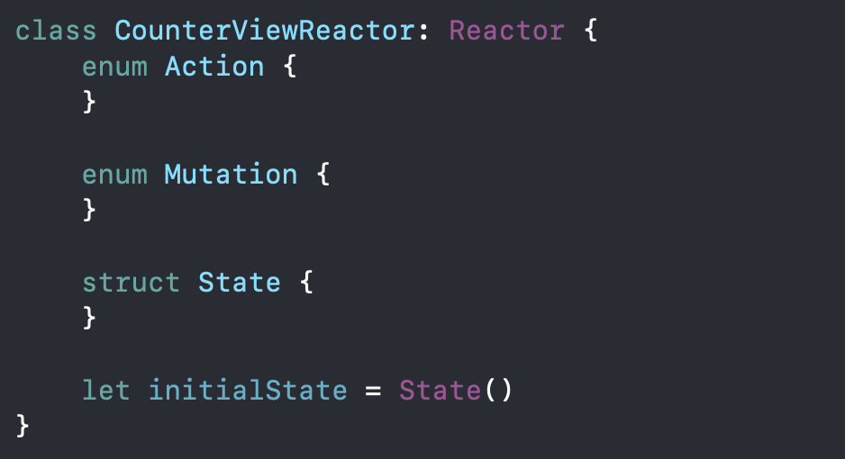 이렇게 Reactor프로토콜을 따르는 CounterViewReactor를 만들어주었습니다.