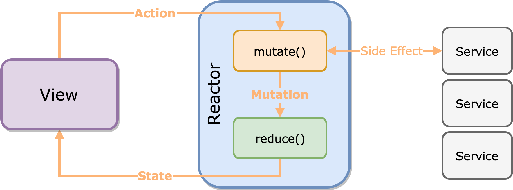 그 결과로 Mutation을 방출하는데, 그 값이 reduce() 함수로 전달된다.