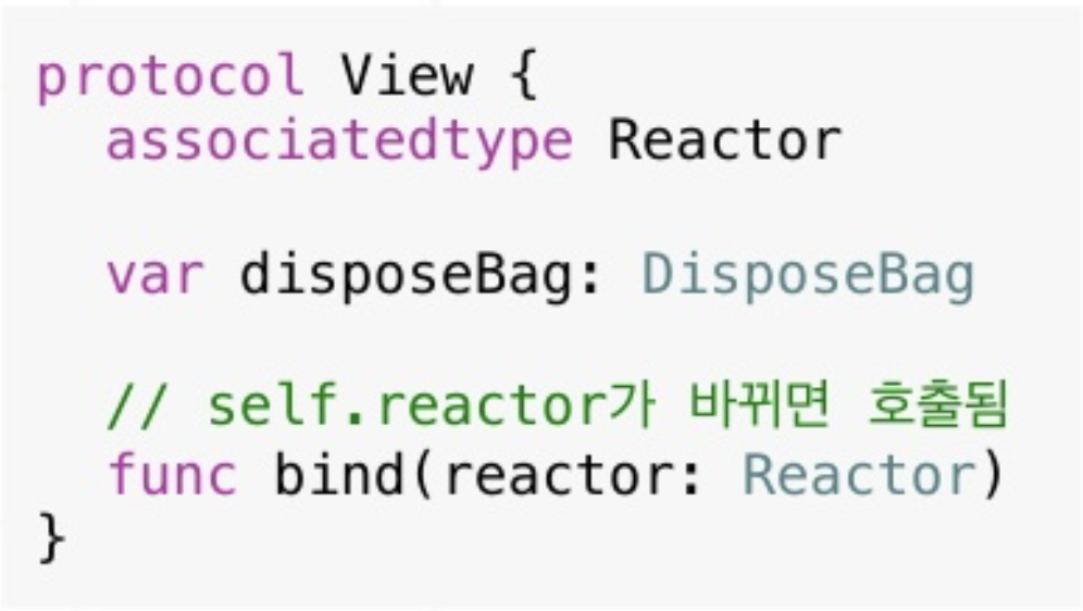 이렇게 View에 Reactor를 넣어주면 bind 함수가 실행이 됩니다.