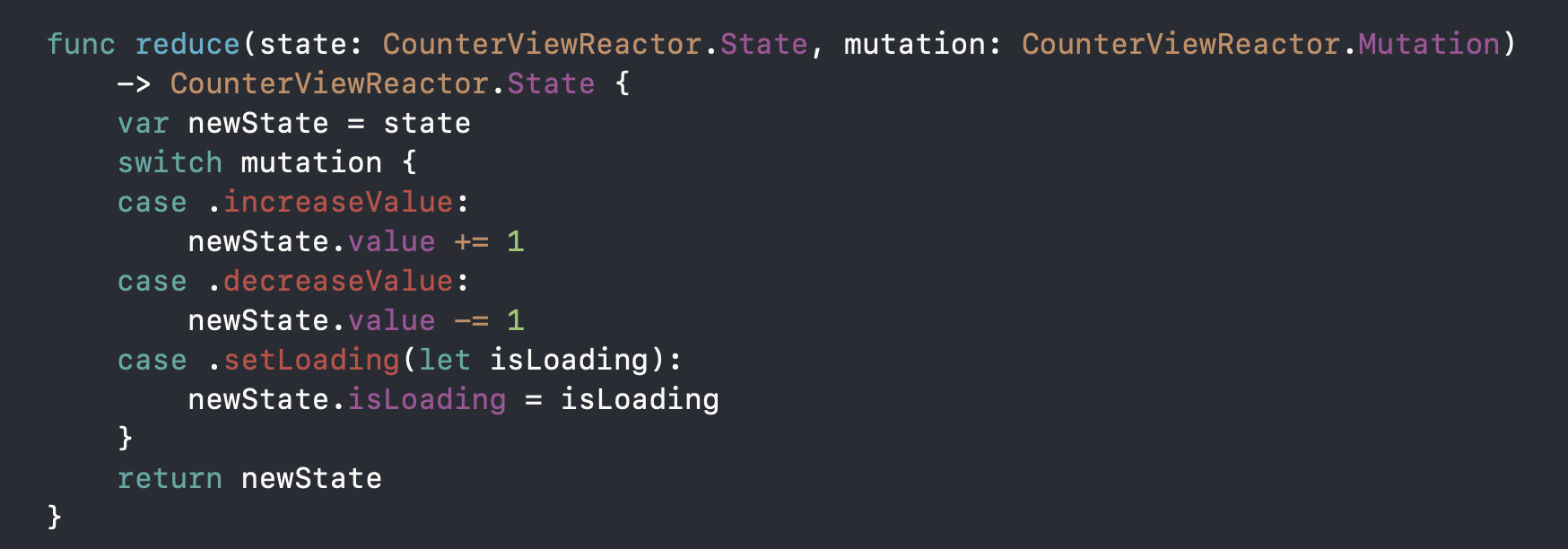 mutation이 decreaseValue이면 이전 상태에서 1을 감소시킨 새로운 상태를 리턴해줍니다