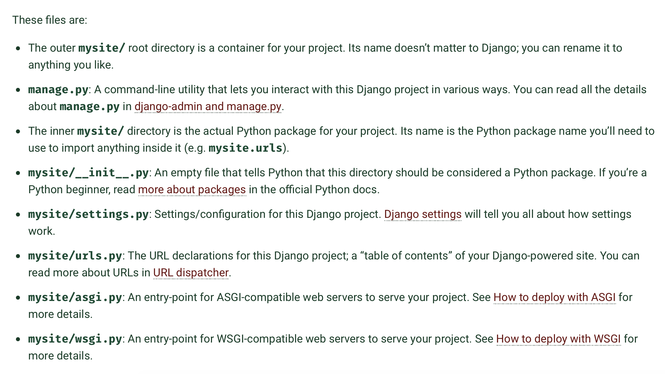 각 파일들이 무엇을 하는 친구들인지는 장고 튜토리얼에 잘 나와있습니다. (나중에 번역하겠음..)