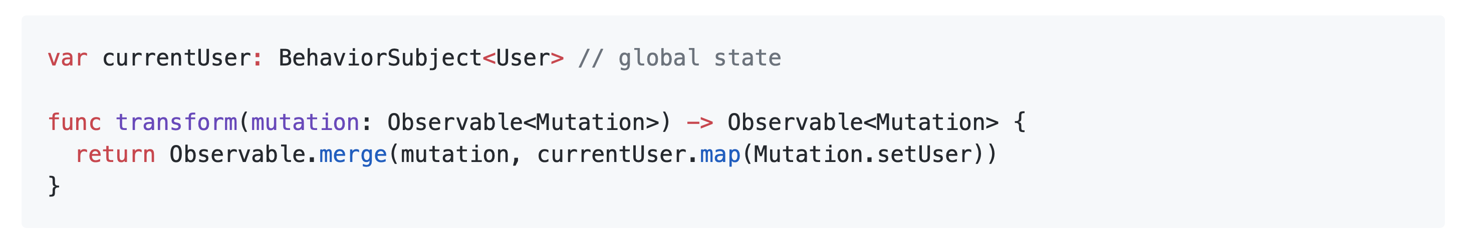 바로 이런 Global State에서 transform(mutation:)가 유용하게 쓰입니다.