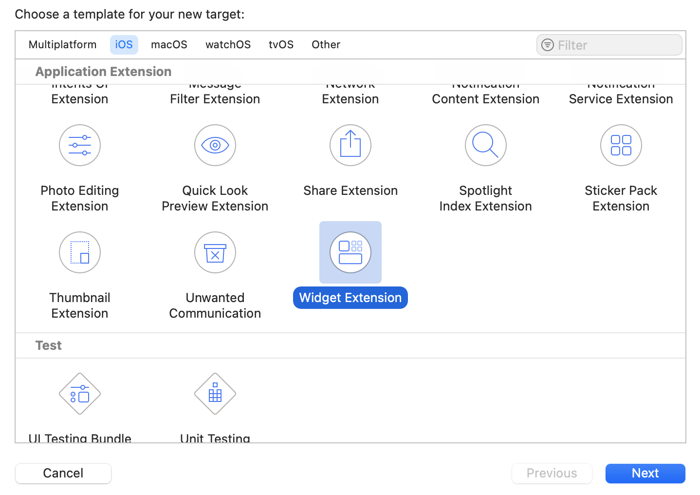 [1] File > Target > Widget Extension 추가하기