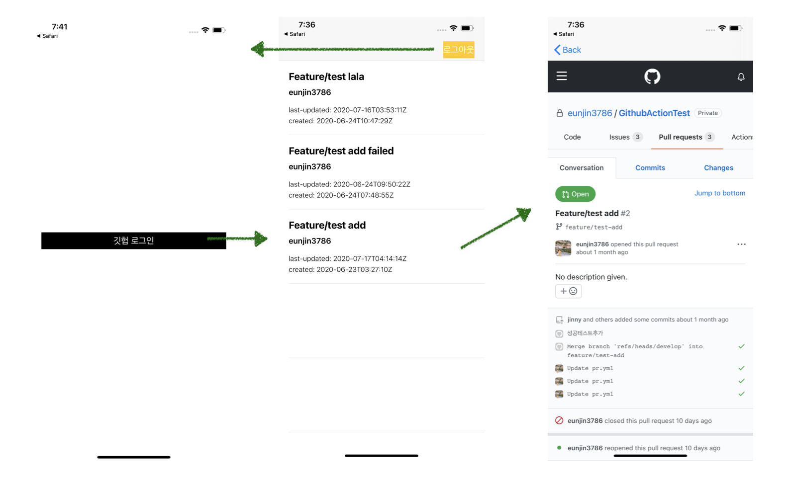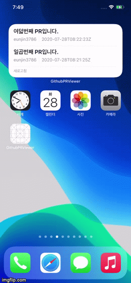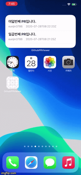 이런 플로우로 되어있는 PR 보여주는 앱을 예제로 하나 만들었습니다.