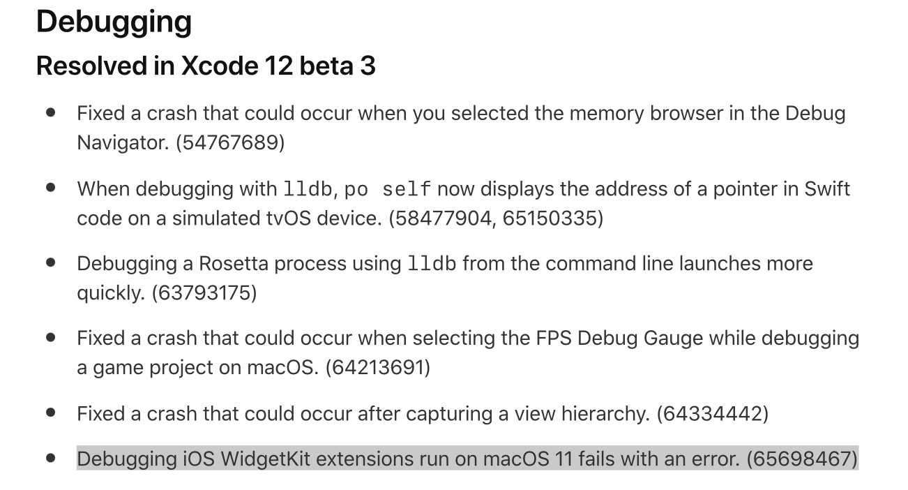 Xcode beta릴리즈노트들을 보면 위젯 관련 이슈들이 되게 많아요 😓