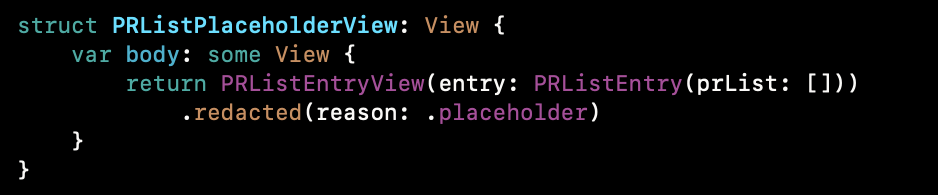 placeholder: PRListPlaceholderView()) { entry in