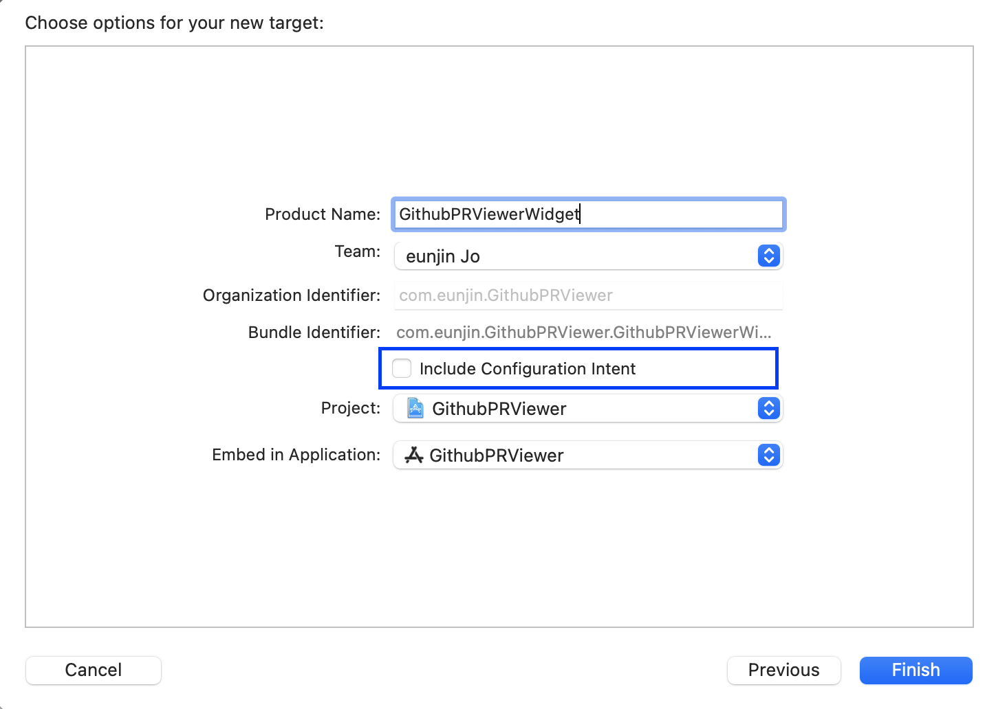 Siri를 안쓸 거라서 Configuration Intent 체크를 안해주겠습니다.