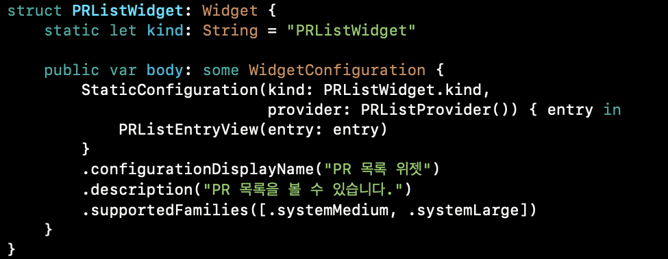 StaticConfiguration(kind: PRListWidget.kind,