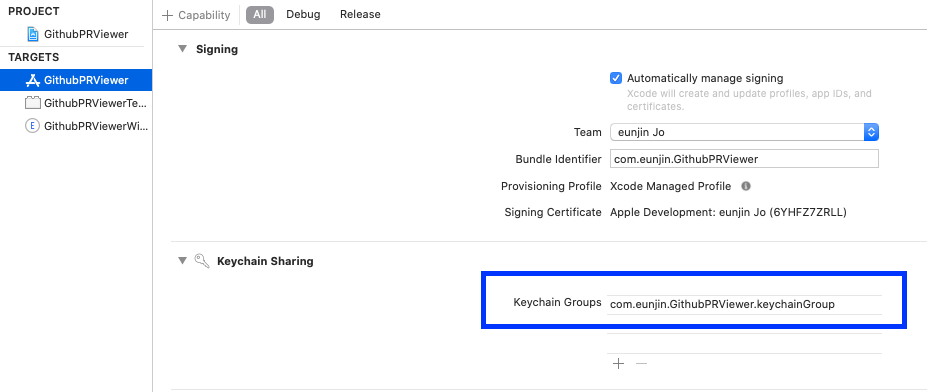 keychain.accessGroup = "\(appIDPrefix).com.eunjin.GithubPRViewer.keychainGroup"