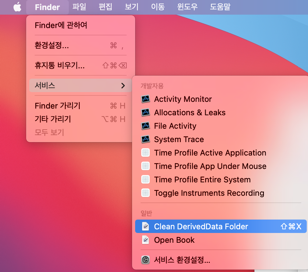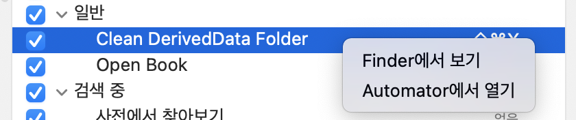 참고로 control하고 클릭하면 Finder랑 Automator에서 볼 수 있구요