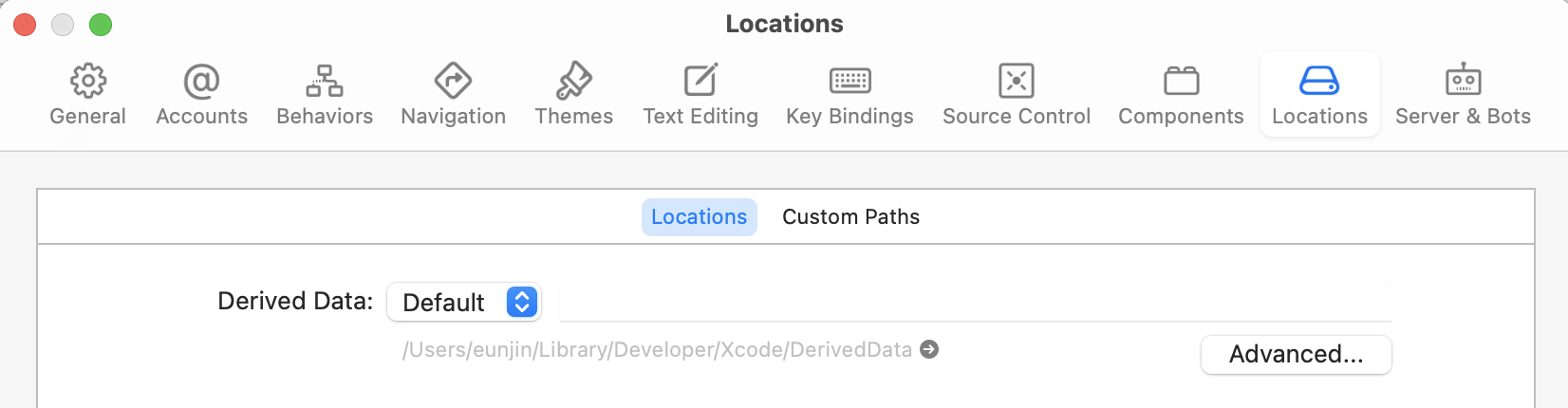 Xcode > Locations 열고 화살표눌러서 들어가고