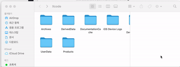 DerivedData > 프로젝트 > Build 안의 폴더를 깨끗하게 비워줍니다.