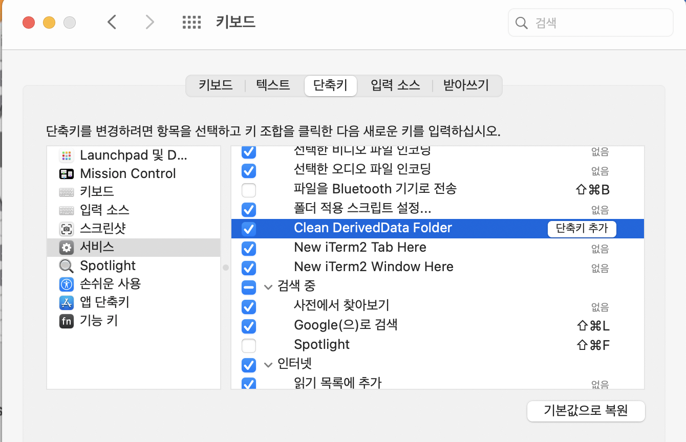 (터미널에서 명령어 입력해서 지우는 방법도 있긴합니다. 하지만 저는 맥 단축어로 해보고 싶었어요!+!)