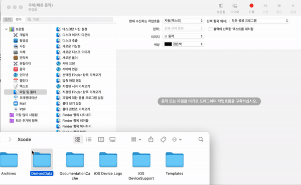 그리고 "Finder 항목을 휴지통으로 이동" 이라는 명령어도 끌어와주세요