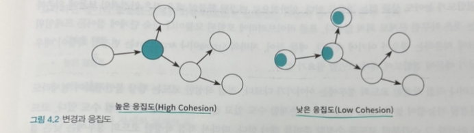 응집도가 높은 설계에서는 하나의 요구사항 변경을 반영하기 위해 오직 하나의 모듈만 수정하면 된다.