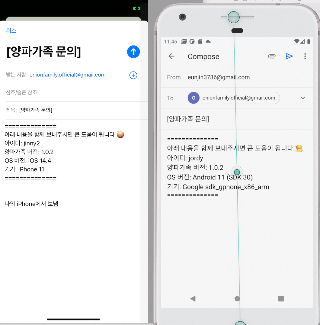 기본 메일 앱이 깔려있고 메일 앱에 이메일을 등록해놨다면 email을 보낼 수 있는 폼이 나오고