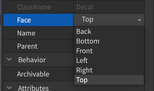 Face 타입 만큼 6개의 Decal을 만들어서 이미지를 설정해주었습니다.