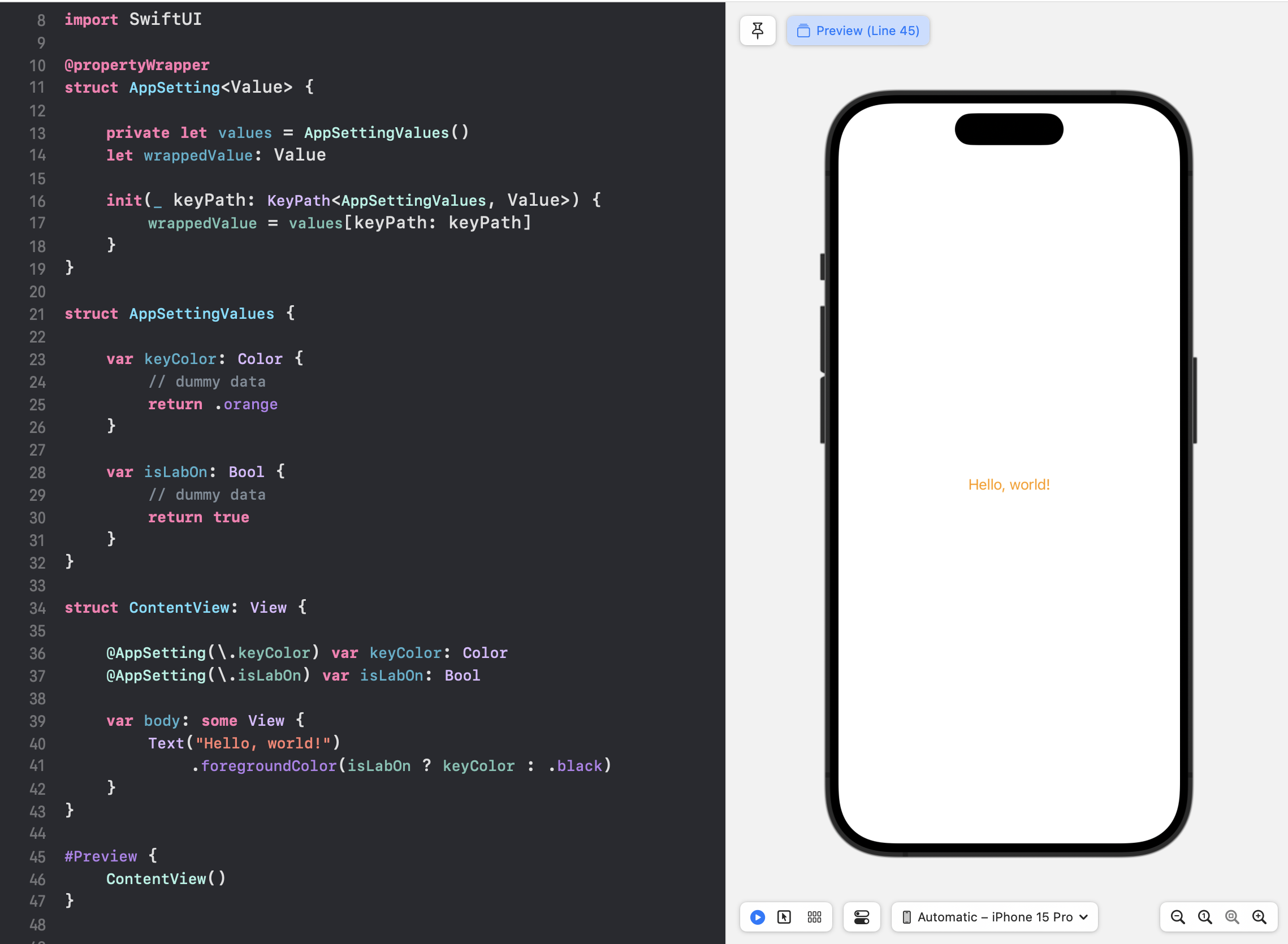 @AppSetting(\.isLabOn) var isLabOn: Bool