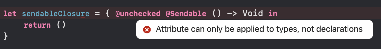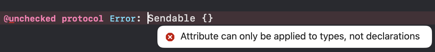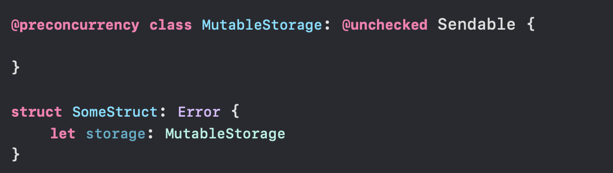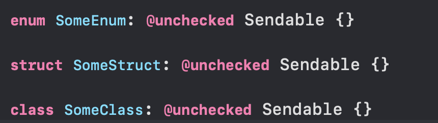 - @unchecked는 타입이 스레드 안전성을 검사하지 않고 Sendable을 준수한다고 선언할 때 사용합니다.