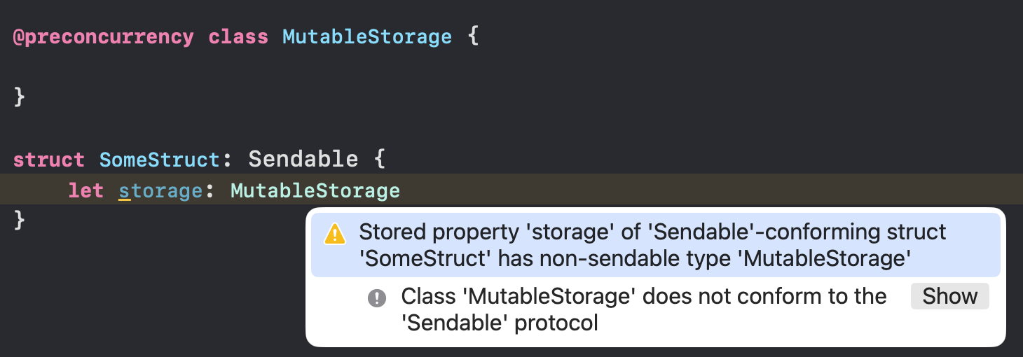 SomeStruct 를 Sendable 로 만들고 싶지만, 내부 필드가 Sendable 준비가 안된 상태 일 때