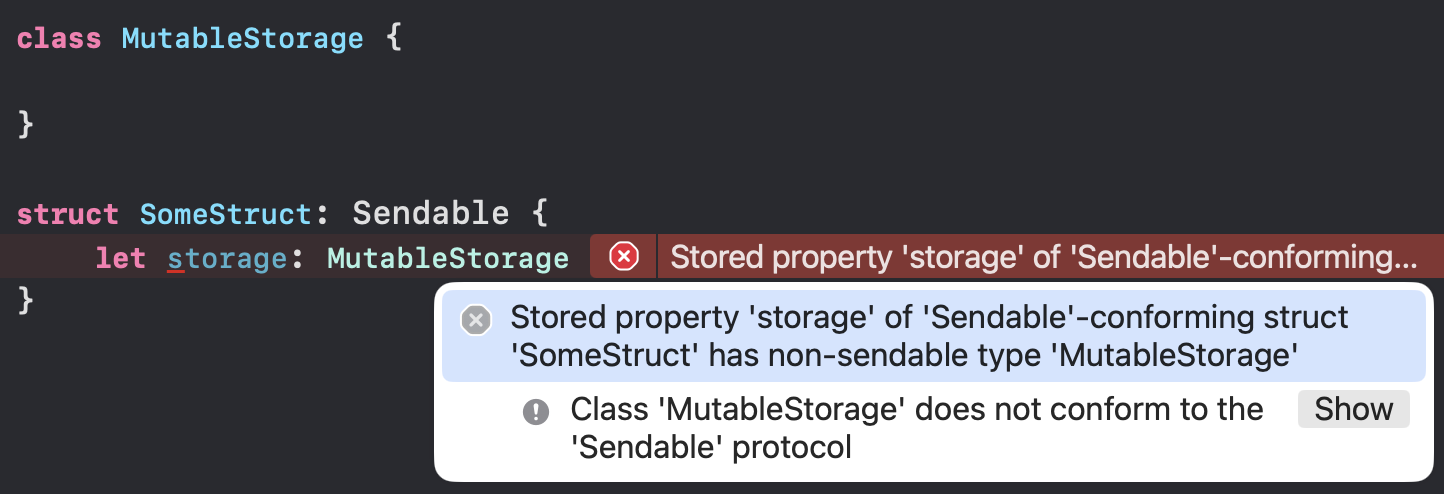 Q. 암묵적으로 Sendable 을 conform 하고 있는 actor 에도 쓸 수 있나 ? -> 일단 컴파일 에러는 안난다. 근데 이렇게 쓸 일 없으니 안 궁금해도 된다.