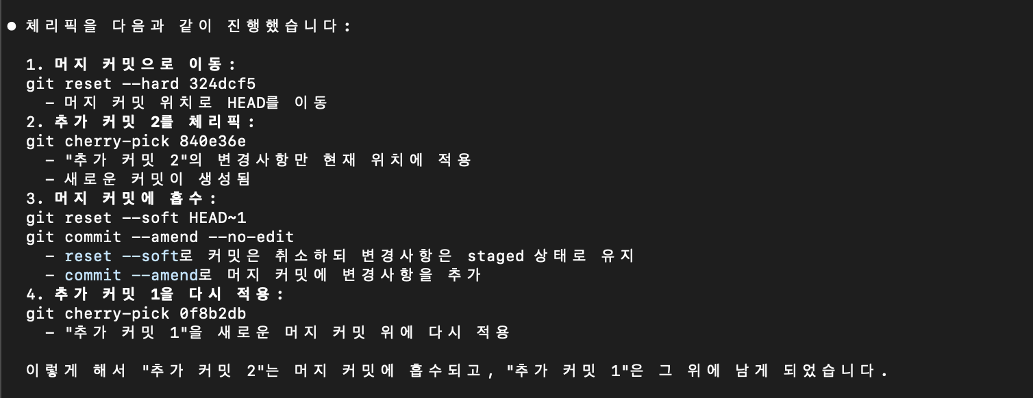 ✅ 2) 추가 커밋2 를 머지 커밋에 합치고 싶을 때